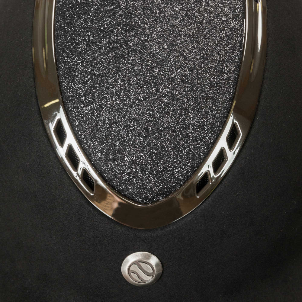 El EQ3 “Pardus”+ Microfibre es un casco elegante cubierto de microfibra negra, con la parte superior decorada con glitter que aporta un toque sofisticado. Las ranuras de ventilación cumplen una función estética y aseguran un excelente flujo de aire, manteniendo la cabeza fresca y cómoda.