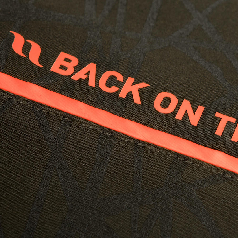El patrón reflectante en toda la superficie, junto con los detalles y ribetes reflectantes, asegura visibilidad desde todos los ángulos. La chaqueta incluye dos aperturas para enganchar correa o arnés.