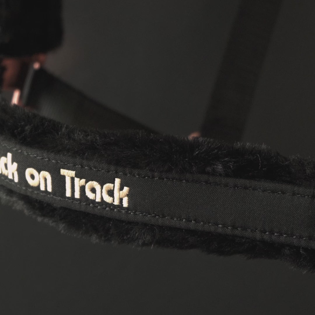 El nuevo cabestro de la colección Haze es elegantemente negro, con herrajes en oro rosado y bordado en rosa en la muserola, ¡hermoso para combinar con las demás piezas de la colección!
