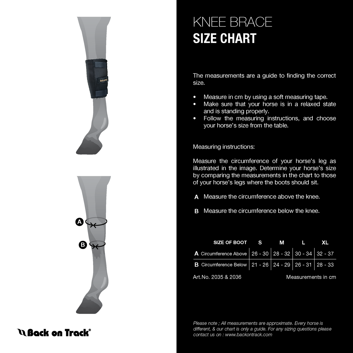Si la rodillera se desliza hacia abajo en un caballo activo, se puede poner una bajo-venda Back on Track en la pierna debajo de la rodilla y la bota permanecerá en su lugar durante el movimiento.